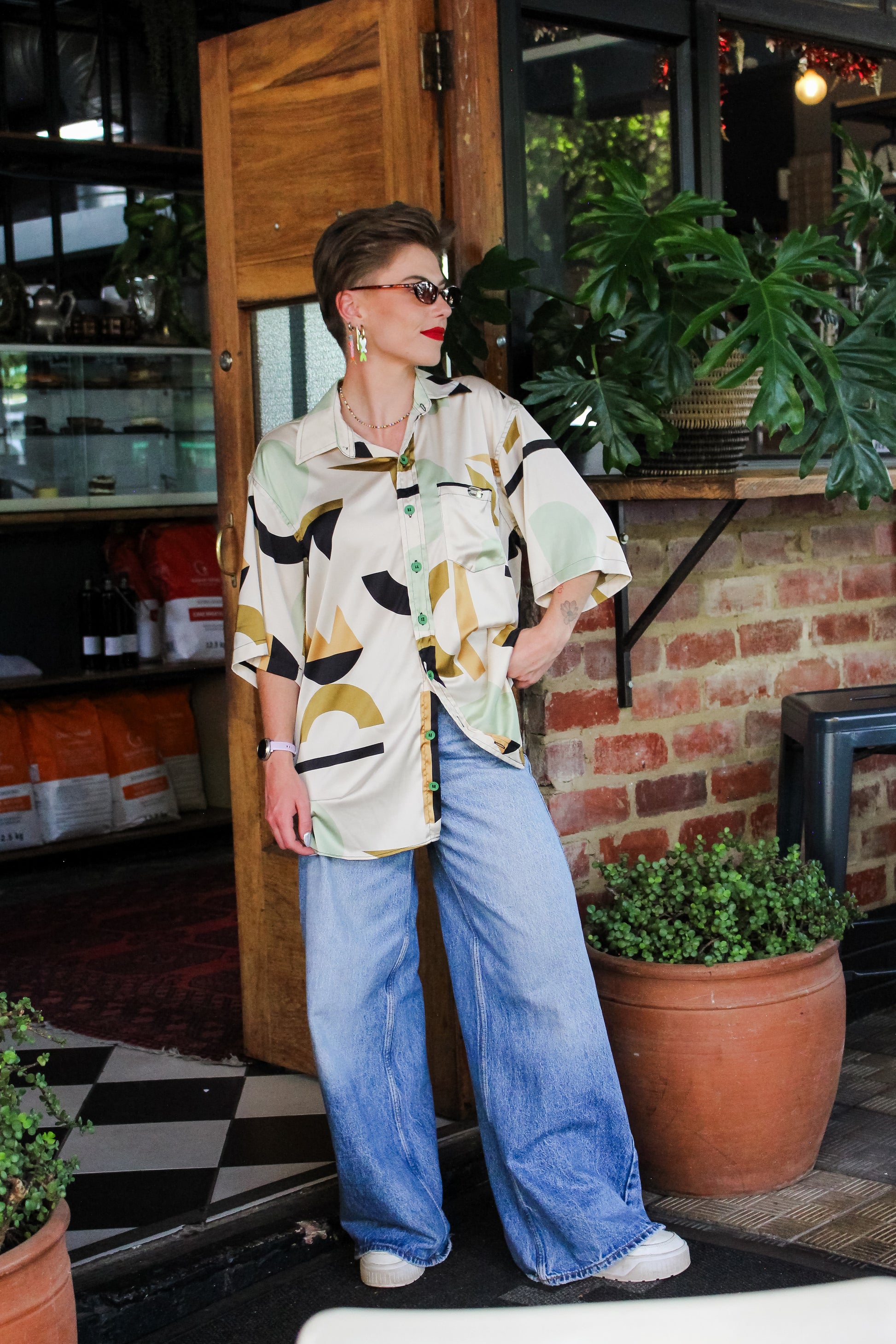 Unveil your free-spirited style with our boho-art satin shirt, a unisex statement piece designed for those who live creatively. Crafted from luxuriously soft satin with a gentle, fluid drape, this shirt catches the light with every movement, giving it an effortless elegance that feels both refined and relaxed.
